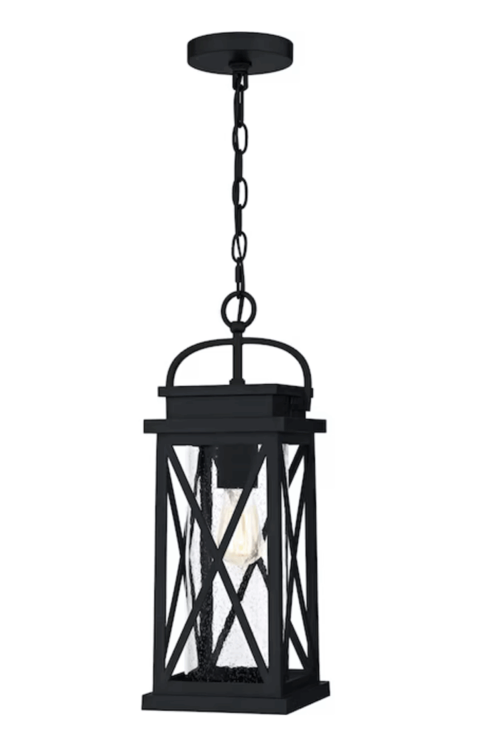 Always chose an indoor/outdoor light fixture for outside even if your porch is covered. You want something that is weather-rated so it holds up long term. Consider dimmable or smart bulbs for flexible lighting options.